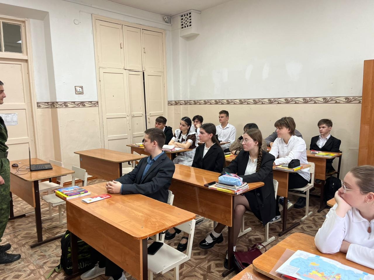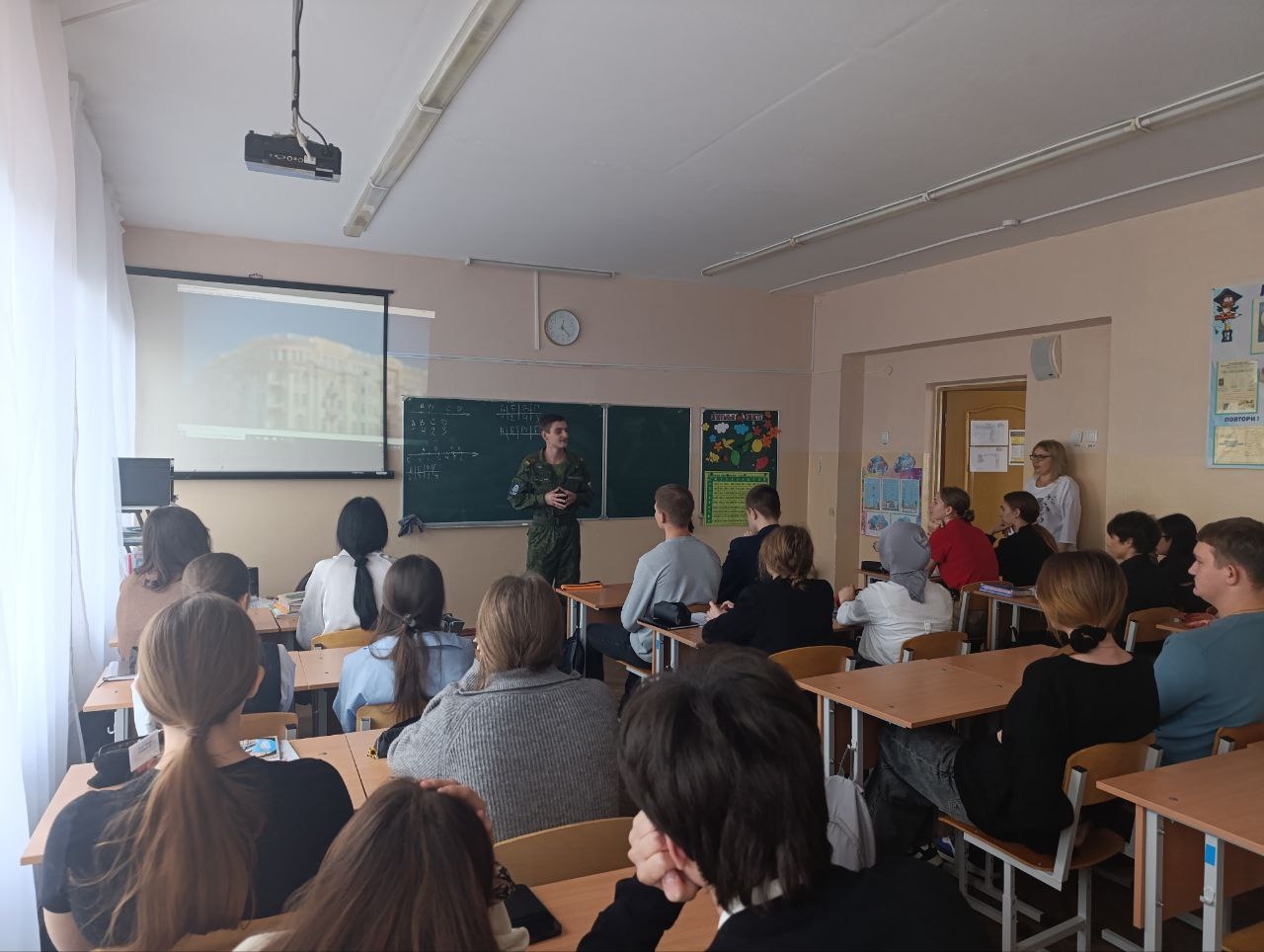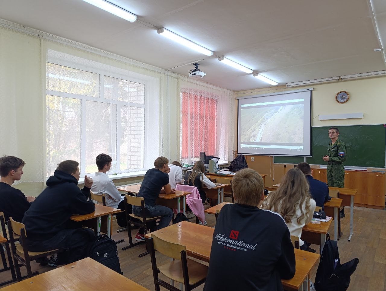 - 10 ноября курсант кафедры Воздушно-космических сил Военного учебного центра при ЮФУ Демиденко Дмитрий провел профориентационную работу в 10-11-х классах в Кущевском районе Краснодарского края.