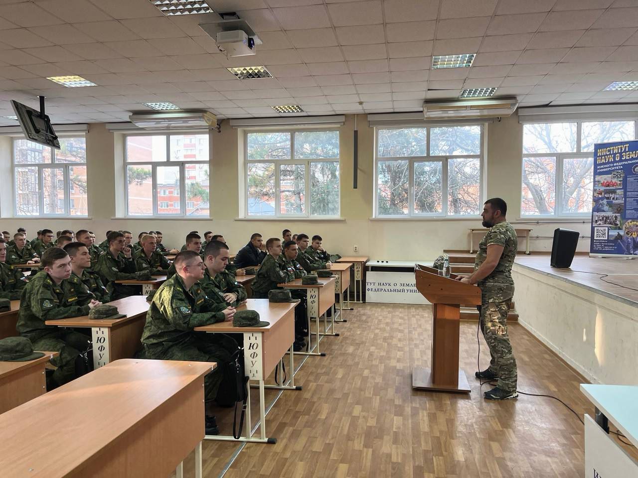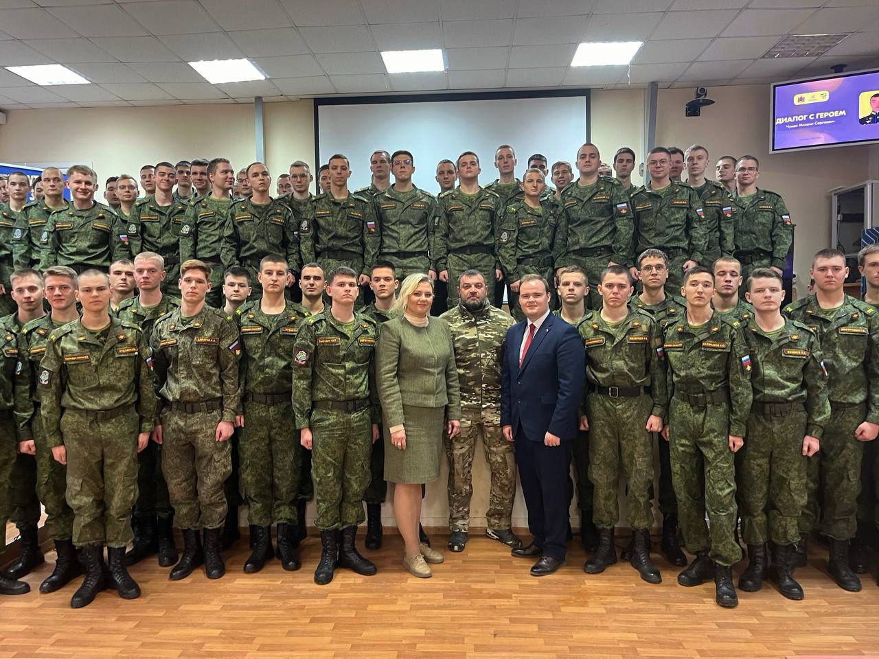 14 ноября кафедра СИТ ВУЦ ЮФУ совместно с отделом нравственного воспитания и подготовки молодёжи к военной службе МАУ «ММЦ г.Ростова-на-Дону» организовали «Диалог с Героем» - встречу с начальником связи - командиром взвода 104-го отдельного танкового батальона 7-й гвардейской десантно-штурмовой дивизии гвардии лейтенантом Михаилом Сергеевичем Чумаком.