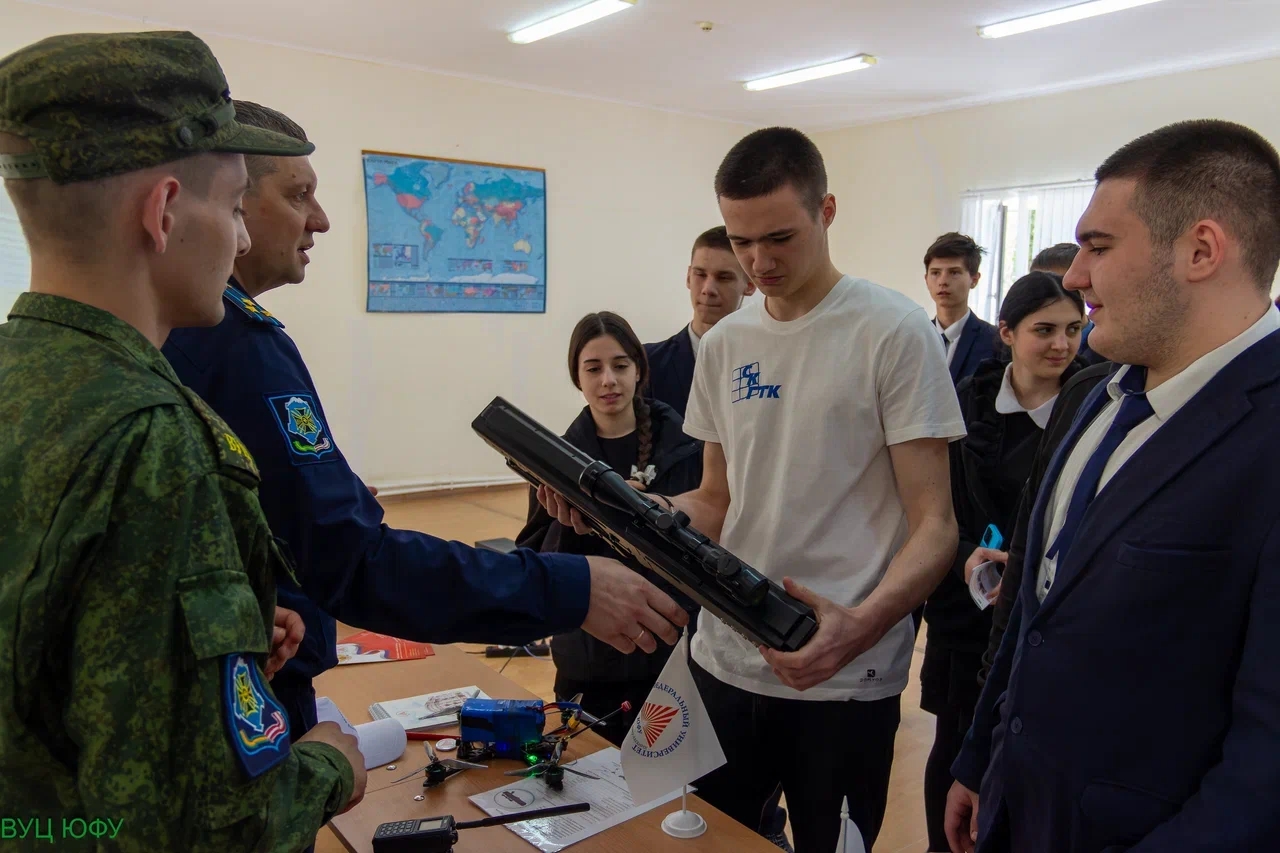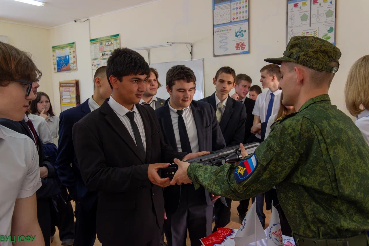 Особый интерес у учеников 8–11 классов вызвала презентация Военного учебного центра (ВУЦ) при ЮФУ. Перед ребятами выступили сотрудники ВУЦ ЮФУ Павел Ч. и Александр З., а также курсанты Сергей Миронычев и Дмитрий Демиденко.