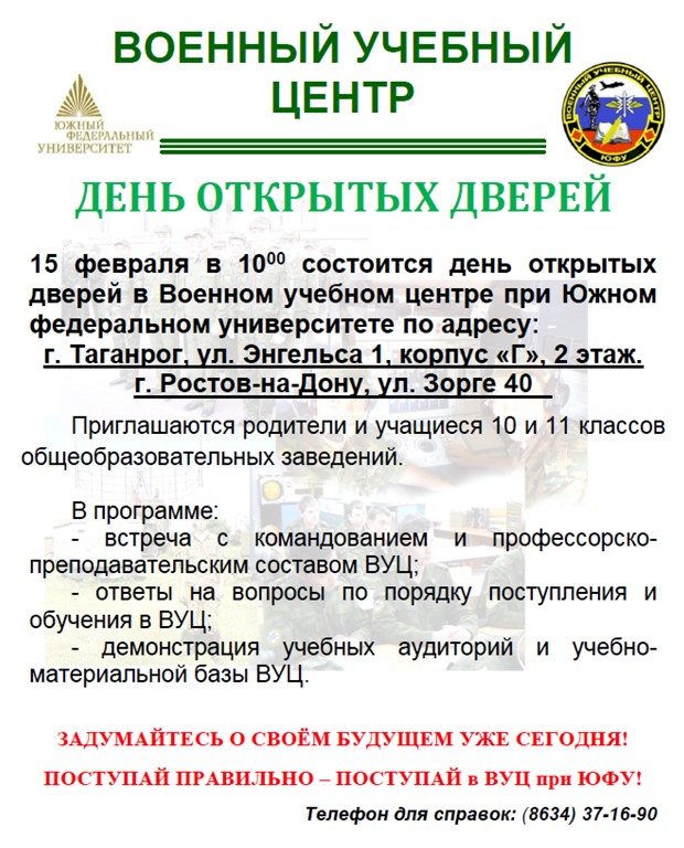 • 16 февраля в 10-00 состоится день открытых дверей в ВУЦ ЮФУ