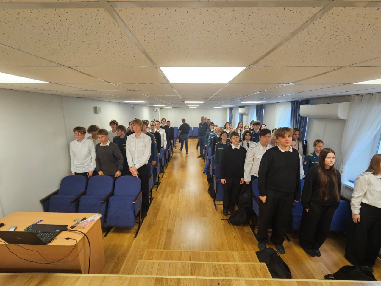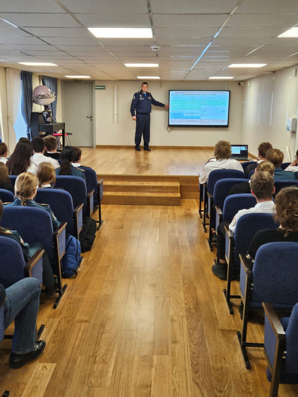 Начальник кафедры ВКС полковник Черевченко П.В., довел учащимся 10 и 11 классов информацию о Военном учебном центре при ЮФУ, преимуществах целевого обучения и военной подготовки. Учащимся, так же была доведена информация о возможности прохождения службы выпускниками ВУЦ при ЮФУ в воинских частях Черноморского флота ВМФ России.