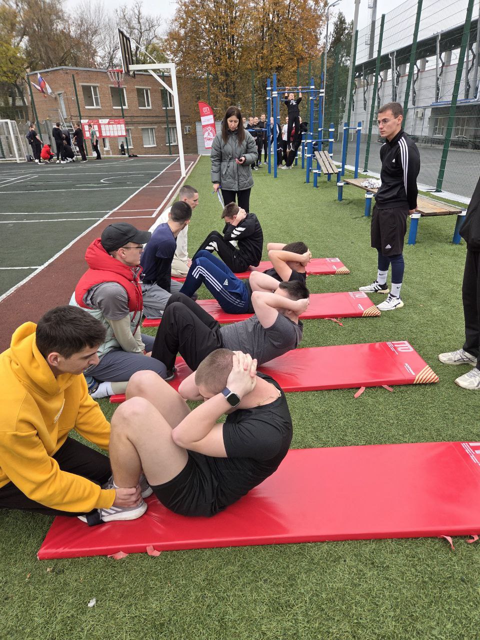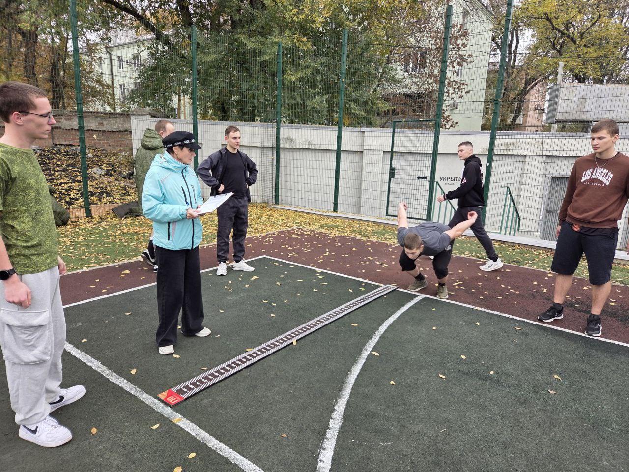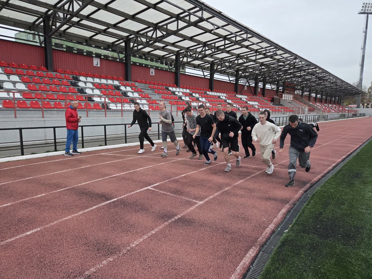 Курсанты 1 курса Военного учебного центра, которые обучаются по специальностям кадра, 7 ноября 2025 года приняли участие в сдаче нормативов комплекса ГТО. Мероприятие было организовано и проходило в центре тестирования г. Таганрога на стадионе "Торпедо" при участии подполковника В. Сухинина.