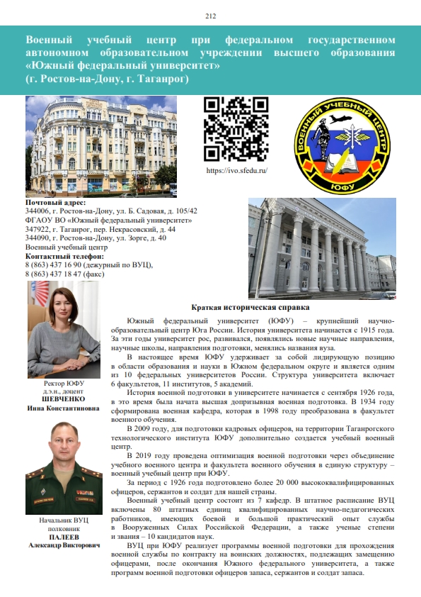 Сборник представляет информацию о выпускниках военных учебных центров Героях Российской Федерации и о ВУЦ, среди которых Военный учебный центр при Южном федеральном университете, о реализуемых у нас образовательных программах с возможностью обучения по военно-учётной специальности.