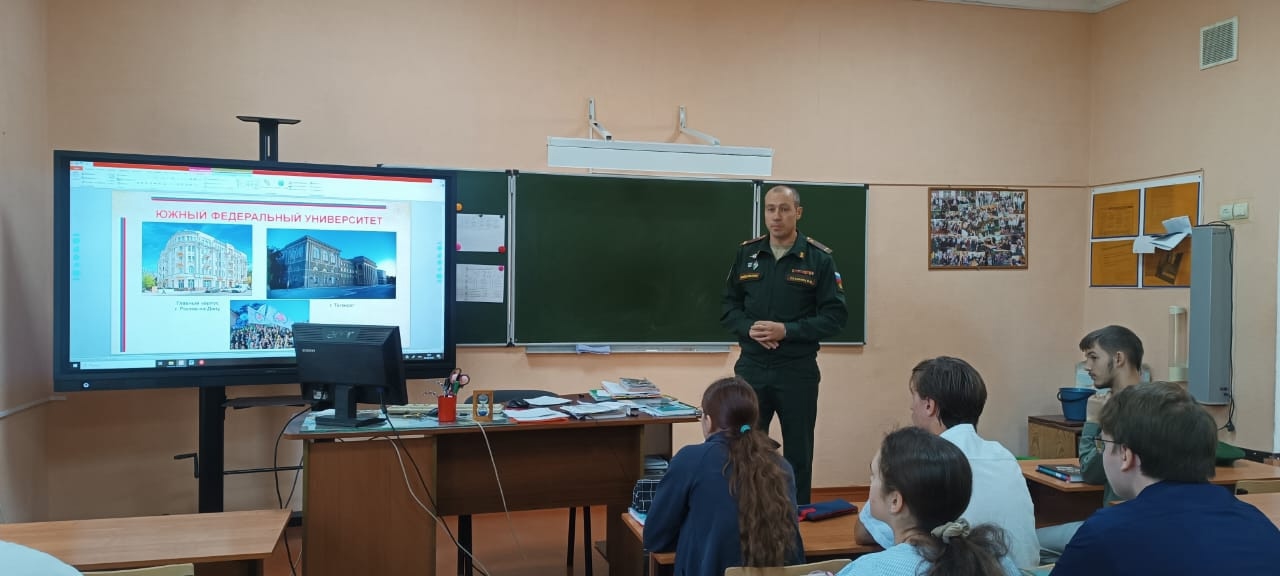 Преподаватели Военного учебного центра ЮФУ побывали в 31 школе г. Таганрога и в школе № 1 с. Александровского Ставропольского края, курсанты из взвода РК-1125 Симонов П.А. и Кузьминых С.А. посетили 9 школу и Таганрогский многопрофильный общеобразовательный лицей, рассказали о приемной кампании 2026 года и особенностях приема на гражданские образовательные программы при желании получить военно-учётную специальность.