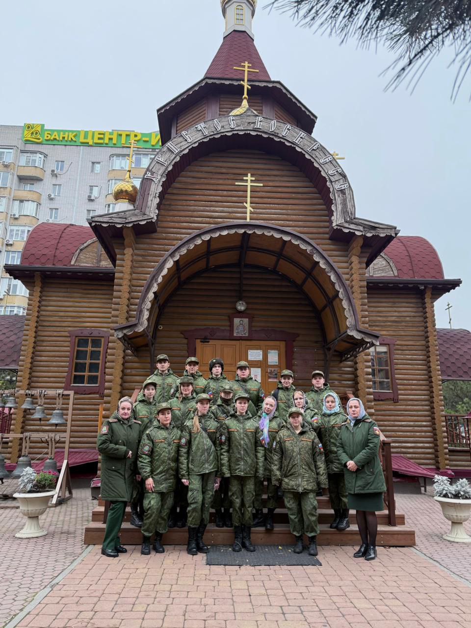 20 ноября в рамках духовно-просветительской работы и работы с верующими военнослужащими, студенты Военного учебного центра с преподавателями кафедры СИТ посетили главный воинский храм Южного военного округа святого Георгия Победоносца