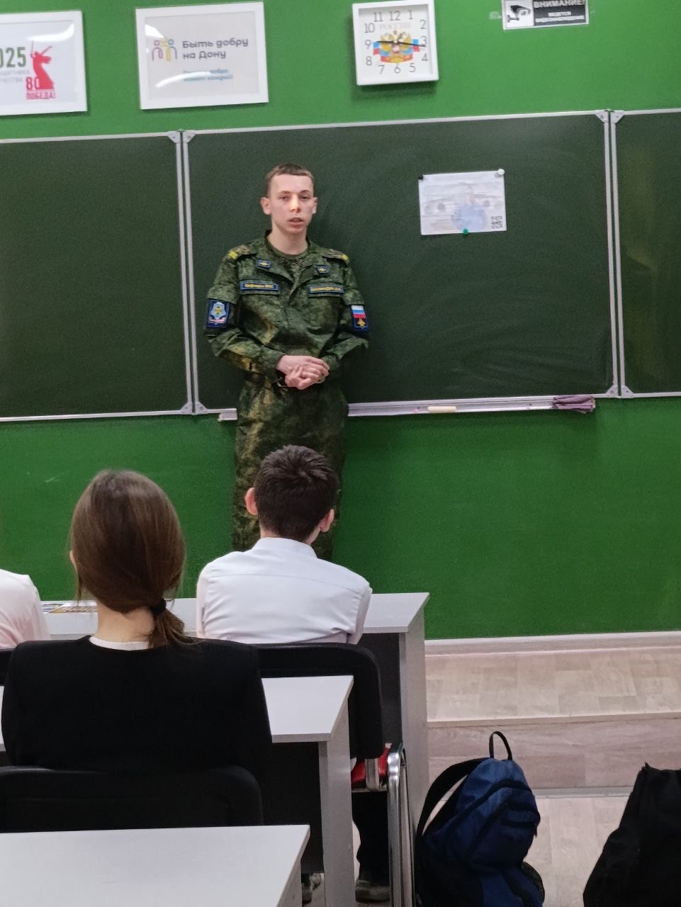 - В г. Донецке Ростовской области студенты Военного учебного центра встретились со старшеклассниками.