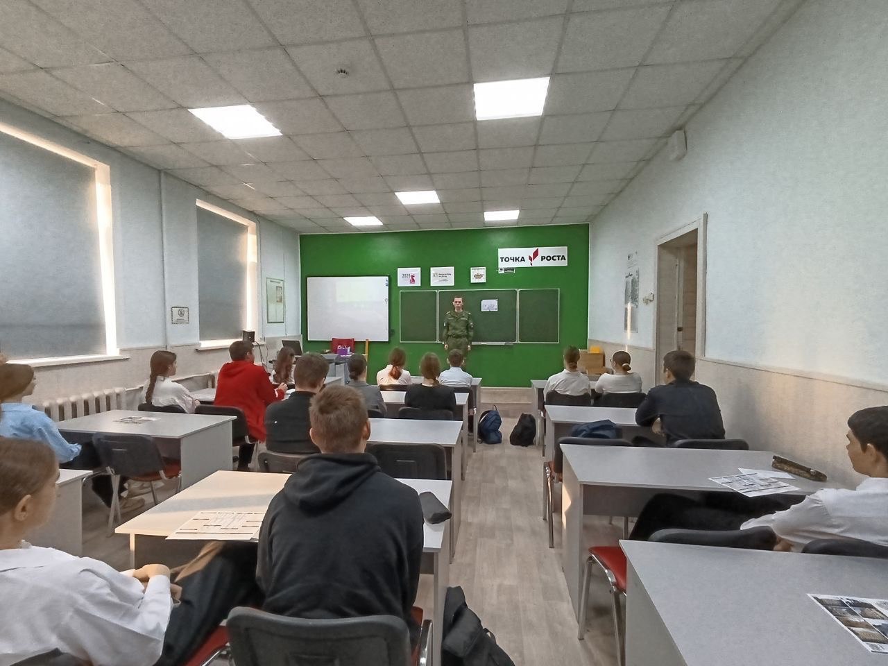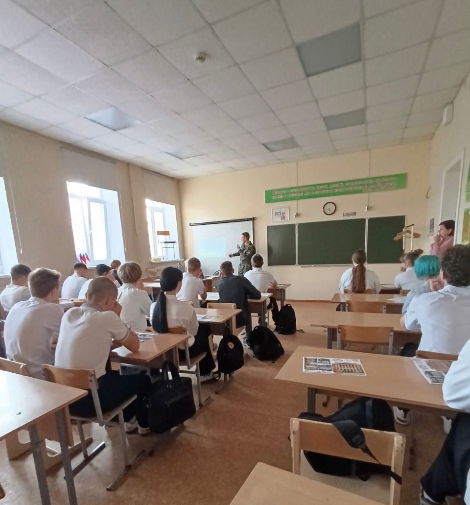 В г. Донецке Ростовской области студенты Военного учебного центра встретились со старшеклассниками ГБОУ "Школа № 138 г.о. Донецк" и МБОУ СОШ № 4 г. Донецка чтобы рассказать им о Южном ведеральном университете, о специальностях и направлениях, которые реализуются в двух локациях - г. Ростове-на-Дону и г. Таганроге